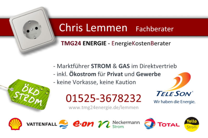 Birgit Womelsdorf - Strom und Gas - 51069 Köln Chris Lemmen - Strom und Gas - 41849 Wassenberg
