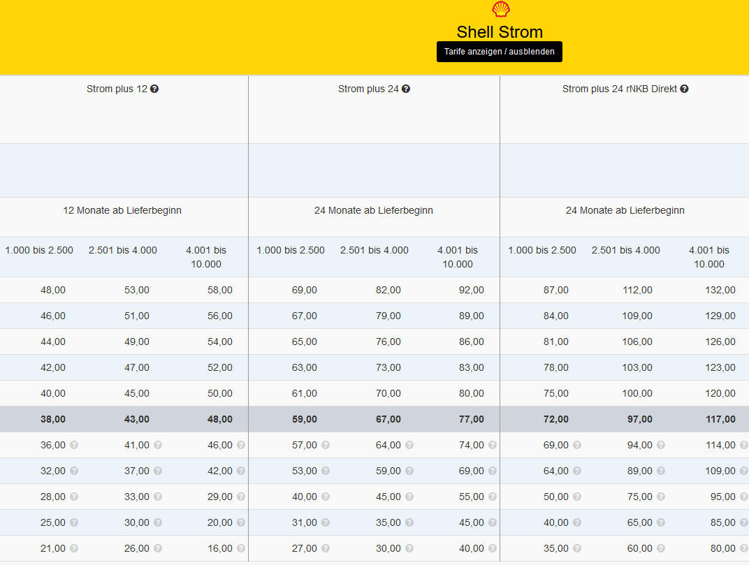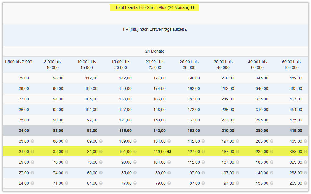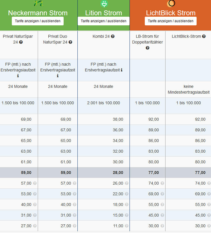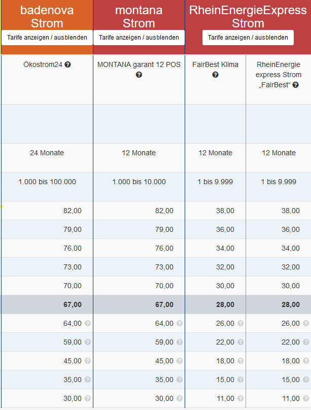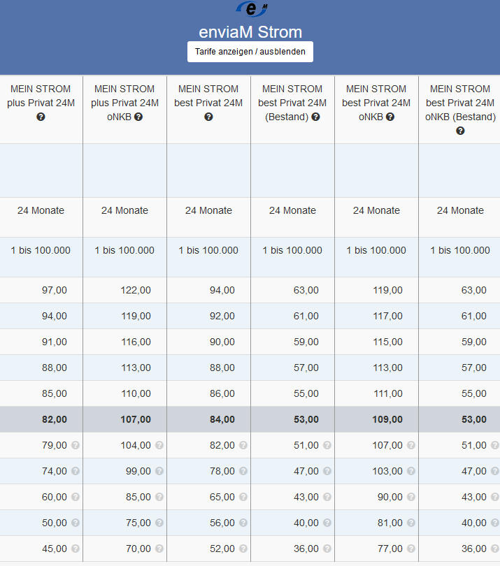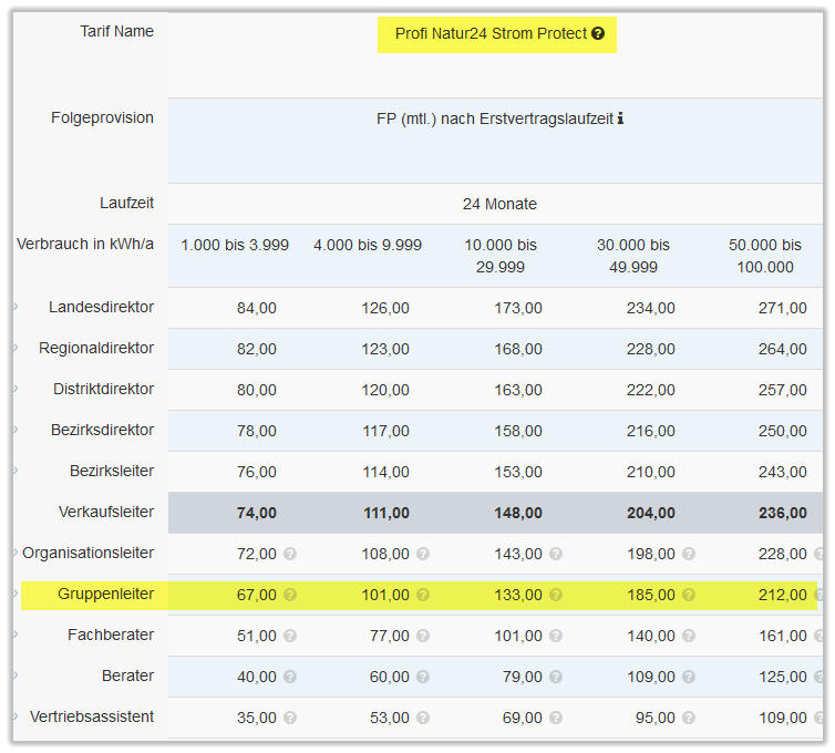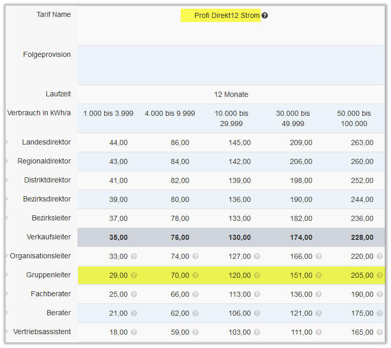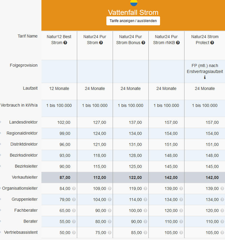 ÜBERSICHT ENERGIE PROVISIONEN