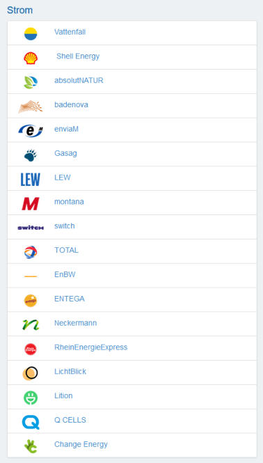 ÜBERSICHT ENERGIE LIEFERANTEN